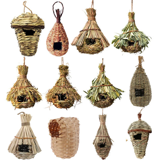14Styles Birds Nest Bird Cage Natural Grass Egg Cage Bird House Outdoor Decorative Weaved Hanging Parrot Nest Houses Pet Bedroom