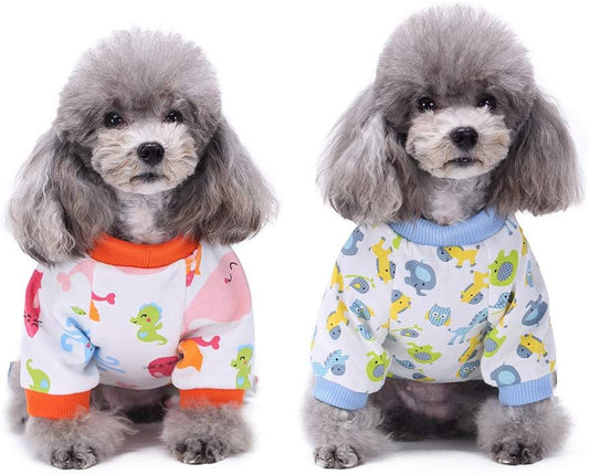 2-Pack Dog Clothes Dogs Cats Onesie Soft Dog Pajamas Cotton Puppy Rompers Pet Jumpsuits Cozy Bodysuits for Small Dogs and Cats